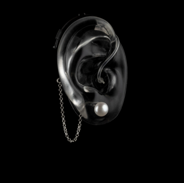 Deafmetal Pearly Day on hopeinen kuulolaitekoru helmikorvakorulla ja hopeisella turvaketjulla. Jos kuulolaitteesi sattuu putoamaan, turvaketjun ansiosta se ei pääse katoamaan. Korun kaikki metalliosat ovat hopeaa. Turvaketjun pituus on 5,5 cm.